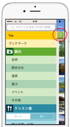 サイドメニューをタップすると、さらに絞込み検索ができます。