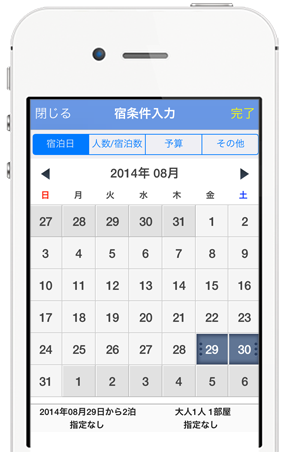 日付や人数を指定して、空き室プラン検索をしましょう。