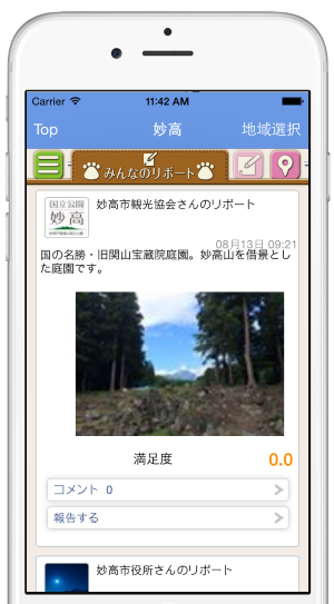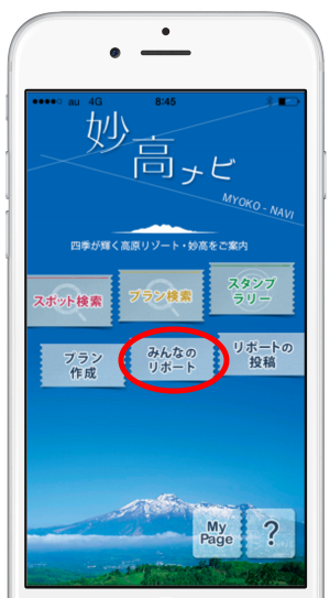 皆様の投稿もお待ちしてます。トップ「旅先からリポート」をタップして、今いる場所を選んでチェックイン。写真やコメントを付けて「リポート」ボタンを押すだけです!