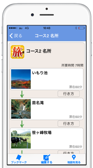 ブックマークしたスポットは、マイページで確認したり、順番に並べて旅プランにすることも可能です。